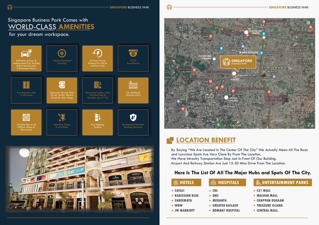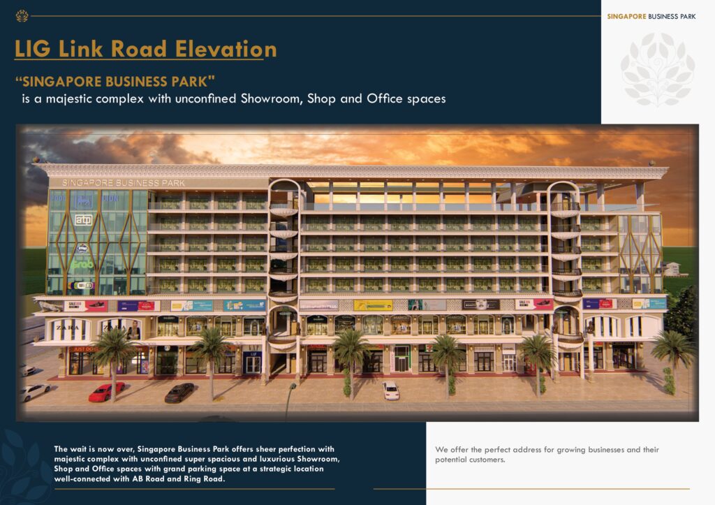 Singapore Business Park is not just another commercial complex β it is a symbol of modern infrastructure, luxury, and ambition. Designed with utmost precision and passion, this majestic project offers unconfined showrooms, swanky office spaces, and world-class amenities that create the perfect business ecosystem.